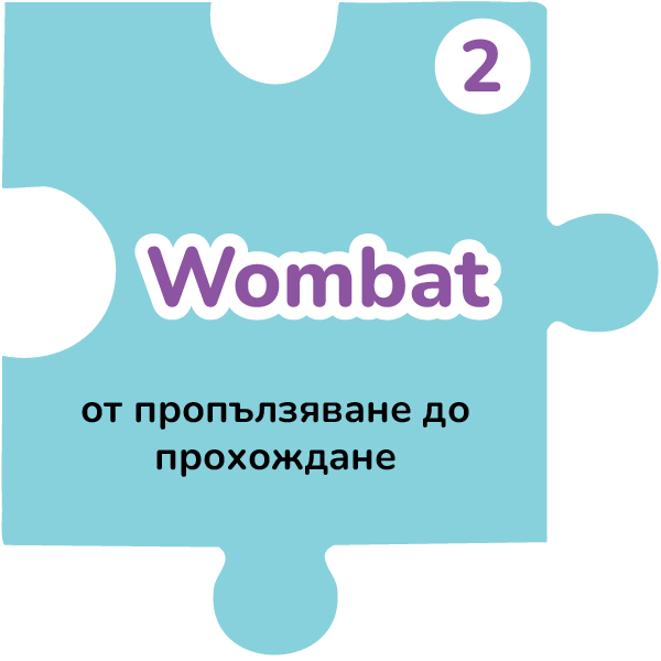 Сега, когато бебето вече се движи, подът е неговата детска площадка. В клас Уомбат ние ще ви покажем много идеи за музика, ритъм и движение, ще използваме различни техники на масаж и игри.