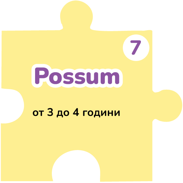 Децата в клас Опосум обичат да се катерят, да бягат и галопират, да скачат и се претъркулват, всъщност обичат всяко движение! Те също така стават все по-социални и обичат да играят с другите деца. В KindyROO ние насърчаваме работа в екип.