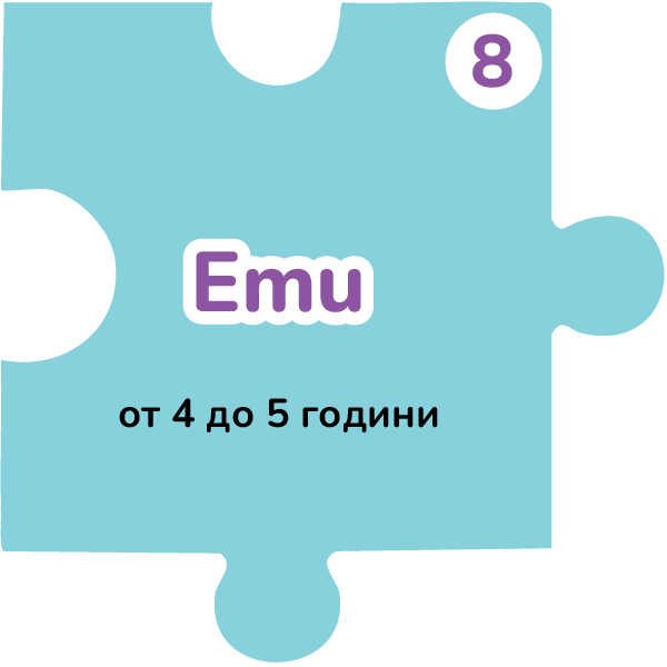 Много специфични са заниманията в клас Ему. Упражнения за развитие на сила в раменния пояс, които спомагат за фина корекция на координацията, концентрацията и двигателните умения, се редуват с работа за фина моторика и развитие на координация око-ръка.
